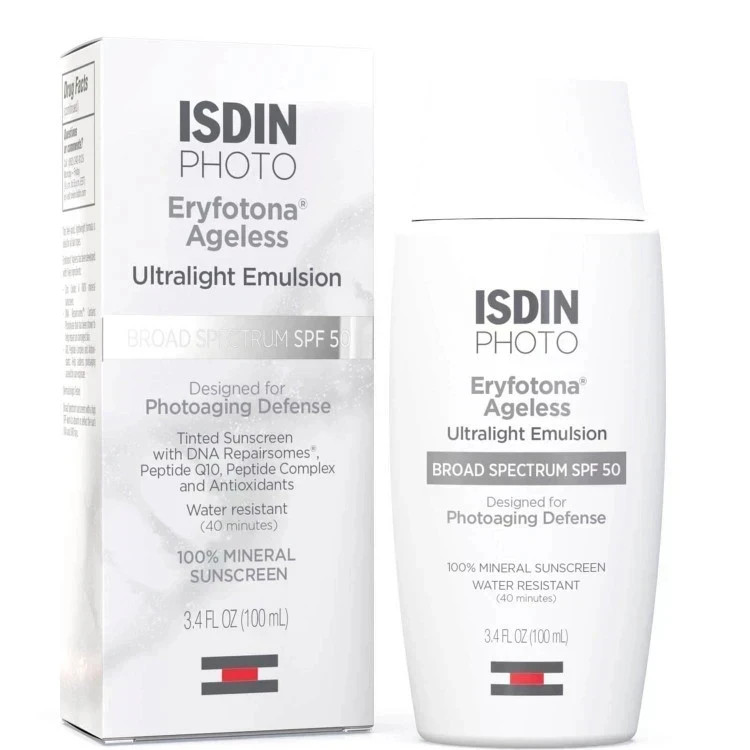 ضد آفتاب مدل Eryfotona Ageless یک امولسیون فوق سبک رنگی با جذب سریع است که به مبارزه با علائم پیری و آسیب های نور خورشید کمک می کند. فرمول نوآورانه آن بر پایه محافظت از پوست است که به بازسازی و ترمیم پوست نیز کمک می کند. این کرم ضد آفتاب %100 معدنی SPF50 ، با ترکیبی نوآورانه از پپتیدها ، آنتی اکسیدان ها و DNA Repairsomes به ترمیم آسیب های رسیده در معرض نور خورشید و کاهش خطوط و چین و چروک روی پوست کمک می کند.