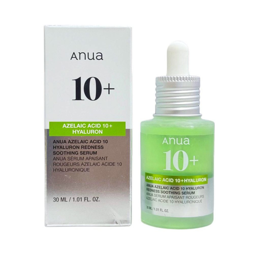 سرم آزلائیک اسید 10% هیالورون آنوا (Anua Azelaic Acid 10% + Hyaluron Redness Soothing Serum) سرمی پرطرفدار از برند کرهای آنوا در زمینه مراقبت از پوست است. این سرم با ترکیب آزلائیک اسید با غلظت ۱۰ درصد و هیالورونیک اسید، هم به درمان مشکلات پوستی نظیر آکنه، قرمزی، التهاب و لکهای پوستی کمک میکند و هم رطوبت و آرامش را برای پوست به ارمغان میآورد.