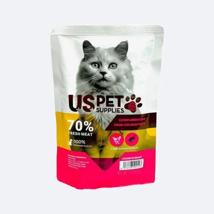پوچ گربه یو اس پت مرغ و بلدرچین چانکی در سس – یه غذای نرم و خوشمزه برای گربههای شکمو!